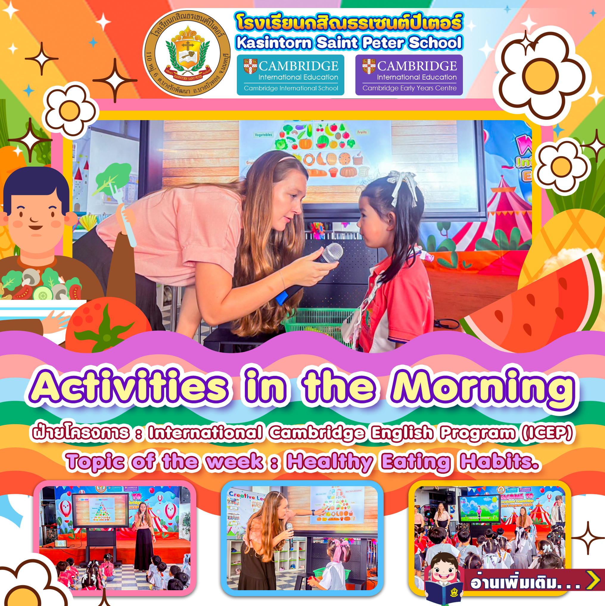 🏫Kasintorn Saint Peter School organizes valuable morning activities for Kindergarten 2 students to support their holistic development in all areas. The sessions are conducted by Teacher Leandrie, who provides engaging learning experiences that encourage children to communicate in English.