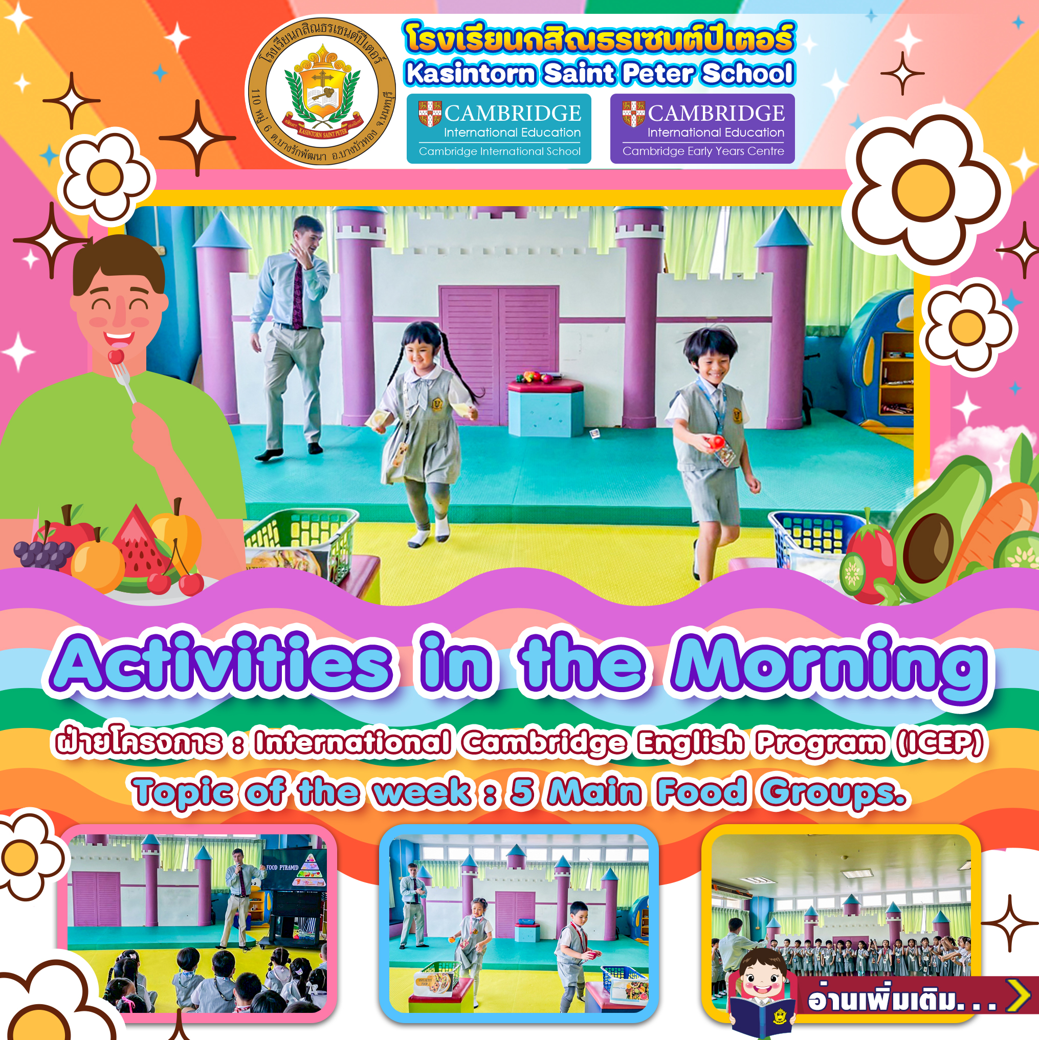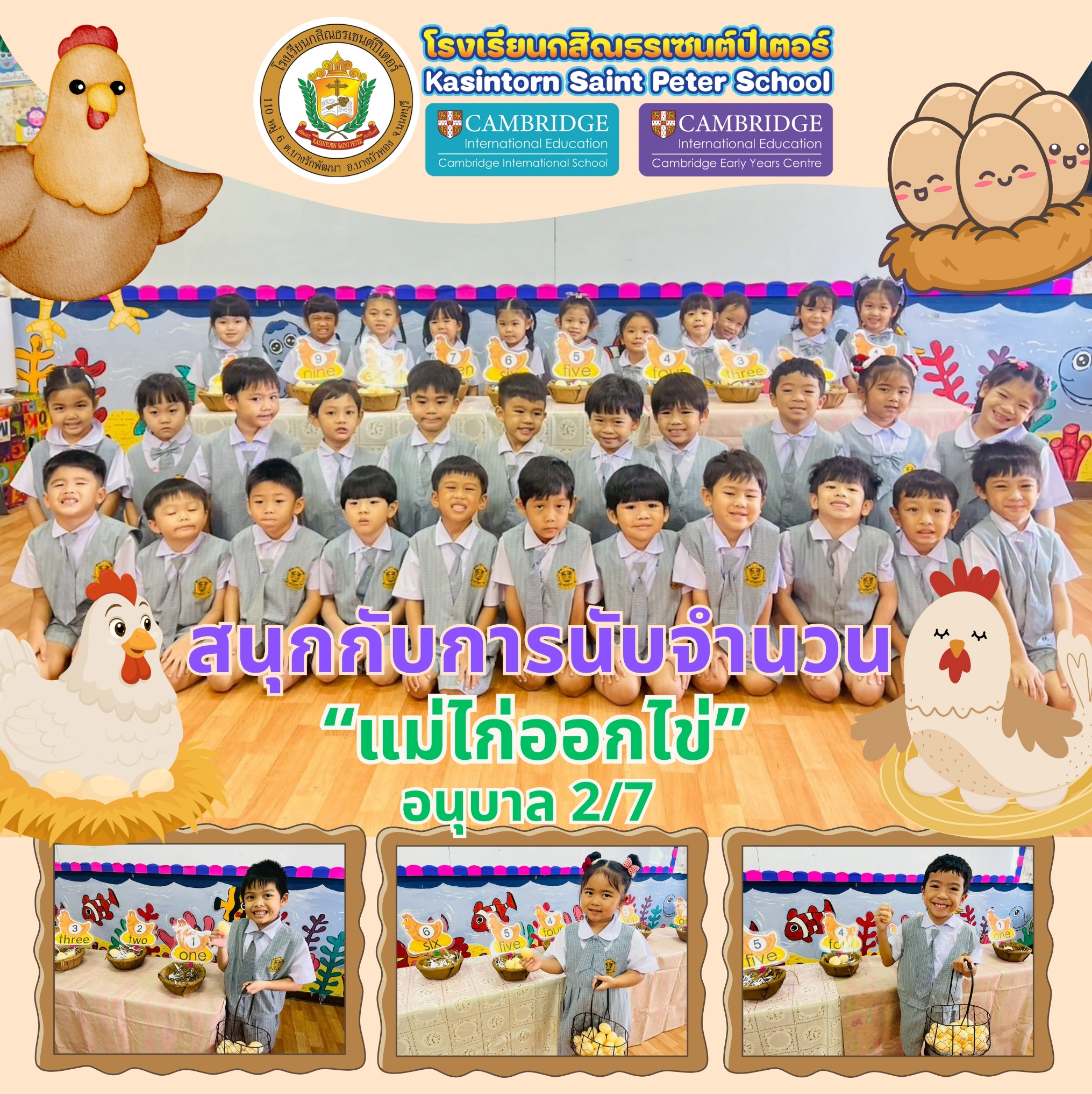 🏫Kasintorn Saint Peter School organizes meaningful morning activities for Kindergarten 3 students. These activities are important in supporting children’s holistic development at their age level. The sessions are led by Teacher Jeremiah, who guides the children in learning and practising English communication through interactive activities.