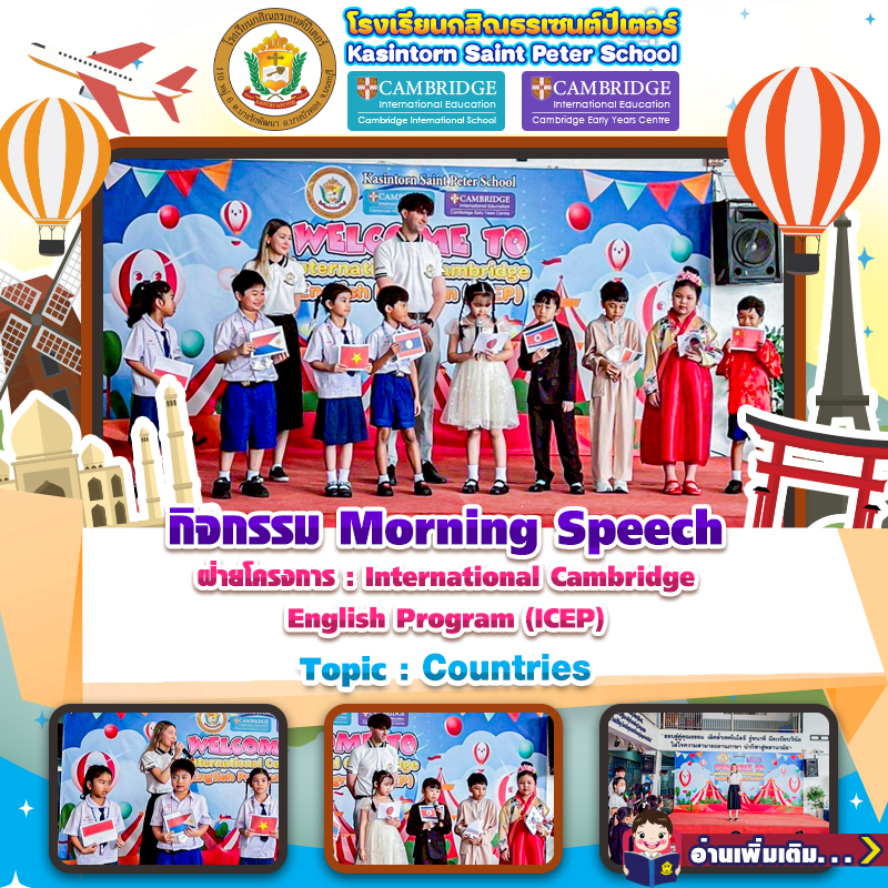 🏫Kasintorn Saint Peter School organized an activity for Grade 2/3–Grade 2/4 students with the objective of developing their listening and public speaking skills effectively. The activity was conducted by T. Thomas Bouet and T. Liana Basyrova, who encouraged students to practice communicating in English on the topic of “Countries.”