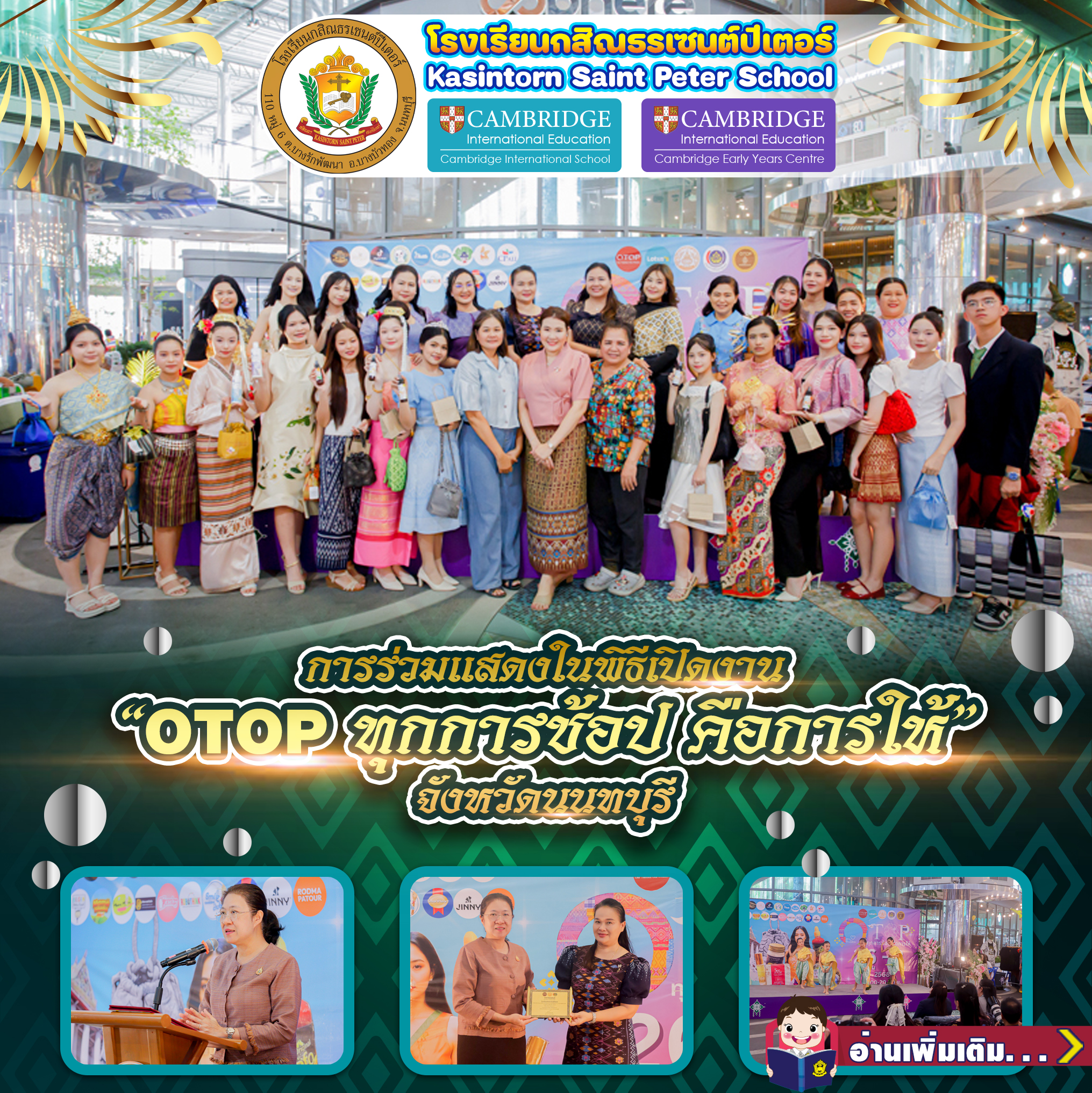 🏫The administrators, teachers, and students of Kasintorn Saint Peter School participated in the opening ceremony of “OTOP Every Shop is Giving” on 26 September 2025 at 4:00 p.m. at the Promotion Area, Lotus North Ratchaphruek, Pak Kret District, Nonthaburi Province.